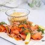 Varmrökt lax med sommarsås på dill & gräslök (ca 80 g lax per portion)